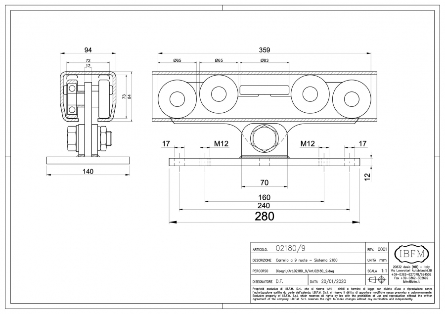 IBFM Art.2180/9 Large carriages wheels for cantilever gates.